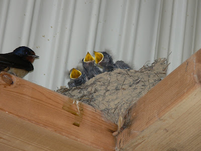 In het toiletgebouw zat een nestje met zwaluwen. Wat een prachtig gezicht!