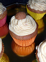 De cupcakes zijn al gebakken volgens dit recept: http://www.cupcakerecepten.nl/2011/10/speculaas-cupcakes en zitten in de vriezer.