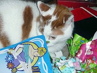 Ook de rest wordt verwend met leuke cadeautjes. En dan is er een cadeautje zonder naam. Nou ja dan moet Bo 'm maar open maken en kijken wat er in zit. Drie flesjes nagellak! Voor wie zouden die zijn? Nou, voor Bo natuurlijk denkt Bo. Maar helaas voor haar, Sint had mij in gedachten... Dat is wel even moeilijk! Maar als ik beloof dat ik haar nageltjes zal lakken, dan is het goed!